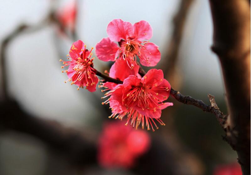 紅梅花圖片 時(shí)間:2025-12-22 22:10:01 紅梅花是梅花當(dāng)中的一種類型,梅花是分為多種類型的,其作用非常高,可以當(dāng)做園林綠化使用,紅梅花是屬于一種常綠喬木,根據(jù)不同的品種有著不同的成長高度,平均高度是在4米到10米之間,每年的果期是在5月份6月份下面是小編為大家找的紅梅花圖片大全