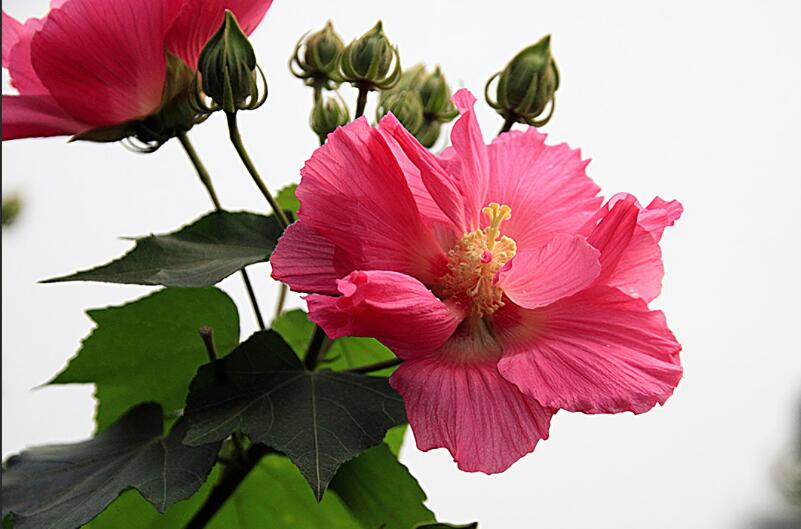 因為木槿花本身花朵都會接二連三的開放,花朵的顏色大部分都是紅色或者是粉紅色,給人一種非常喜慶的感覺,它也有紅火的含義。